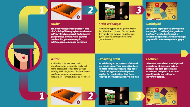 The Arts Council of Wales needed an interactive PDF designed to advise youngsters about the multiple career options available in the creative arts. The look therefore needed to be colourful, bold and not too cluttered. The thumbnails link to bespoke bi-lingual videos presented by experts in those particular fields.